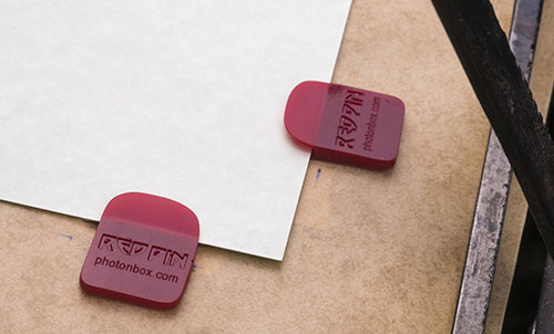 Rubber gauge pins for letterpress printing Another alternative to the classic Megill gauge pins. I make these by hand from flexible polyurethane rubber in my own molds. Just cut a slot in your tympan, push the foot through, and fasten with your choice of tape, double-sided tape, or even a glue stick.