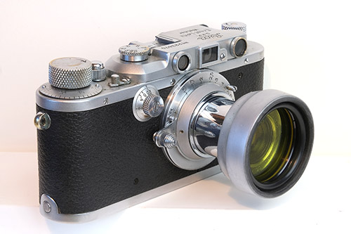 A combination lens hood/filter holder for 50mm collapsible Elmar lenses and similar |